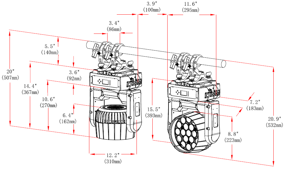 В ICARUS 320 установлен усовершенствованный источник света. Этот прибор обладает всеми преимуществами светодиодных технологий: низкое энергопотребление, длительный срок службы, небольшой размер и вес. Это прибор с 37 RGBW светодиодами по 20 Вт каждый и широким диапазоном зума 10°-60° с коэффициентом масштабирования 1:6.