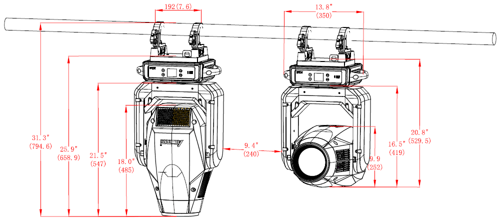 Управление o 4-х кнопочная сенсорная панель o LCD-дисплей o Протоколы: DMX512, RDM, Art-Net, sACN o Режимы DMX протокола: 3 o Pan/Tilt разрешение: 16-bit o Обновление прошивки через DMX или USB-диск